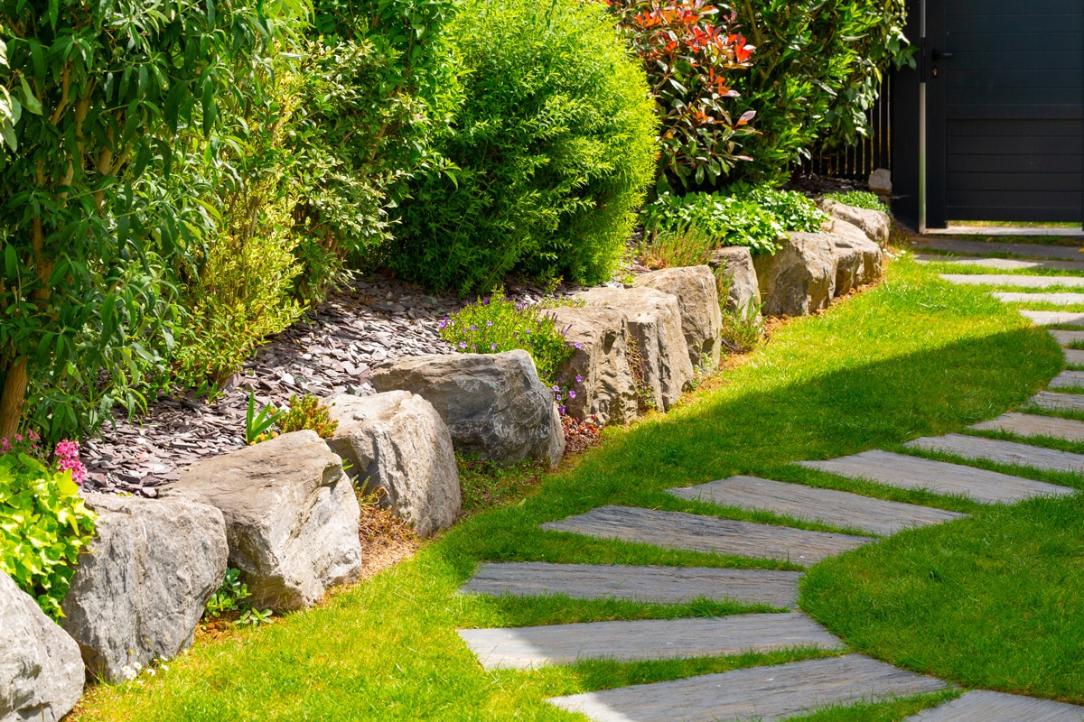- Structurez l’espace avec des éléments naturels, tels que des massifs de fleurs, des haies ou des pas japonais ;